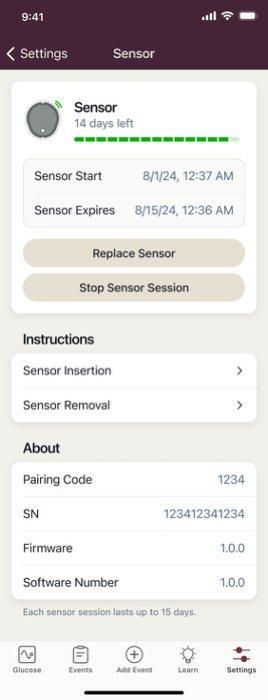 If you are in an active sensor session, you can locate your biosensor serial number in the Stelo app under Settings>Sensor>SN